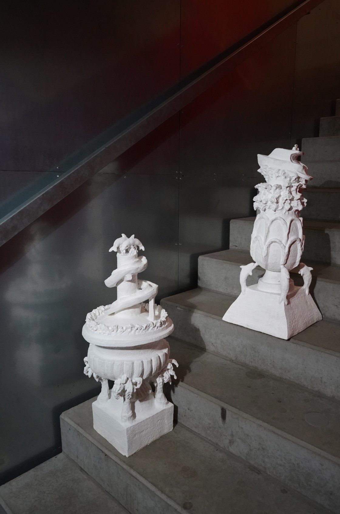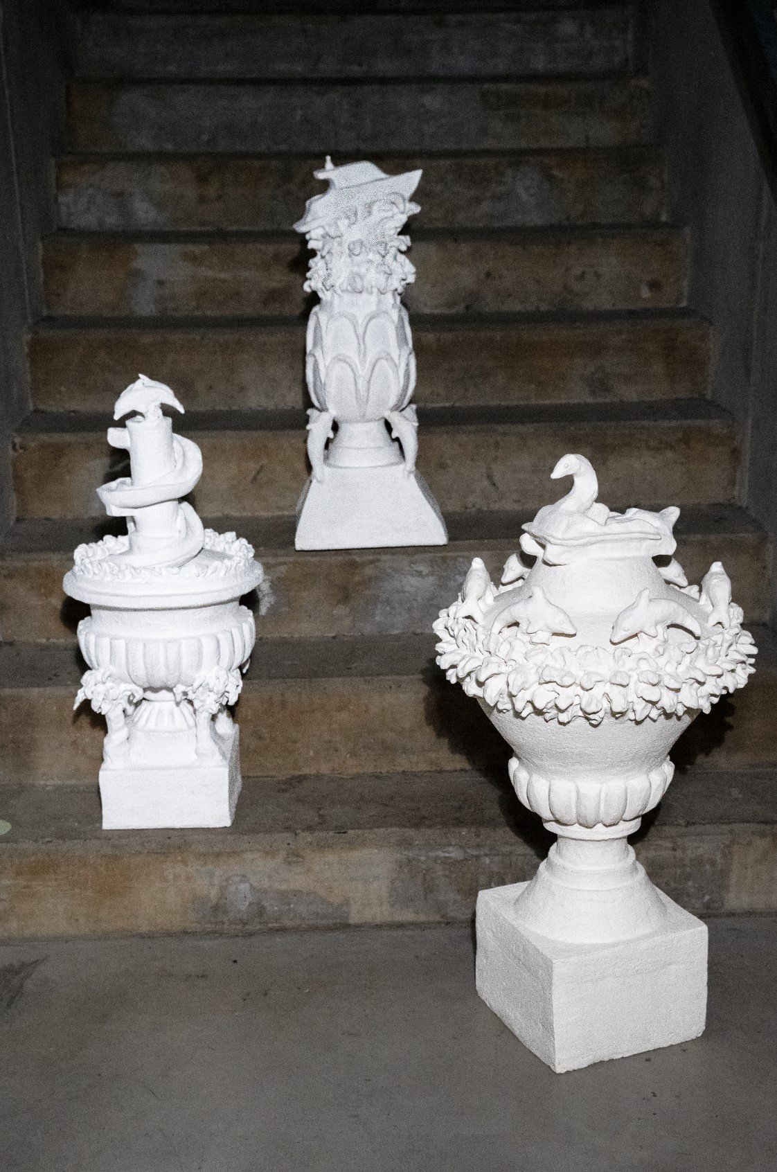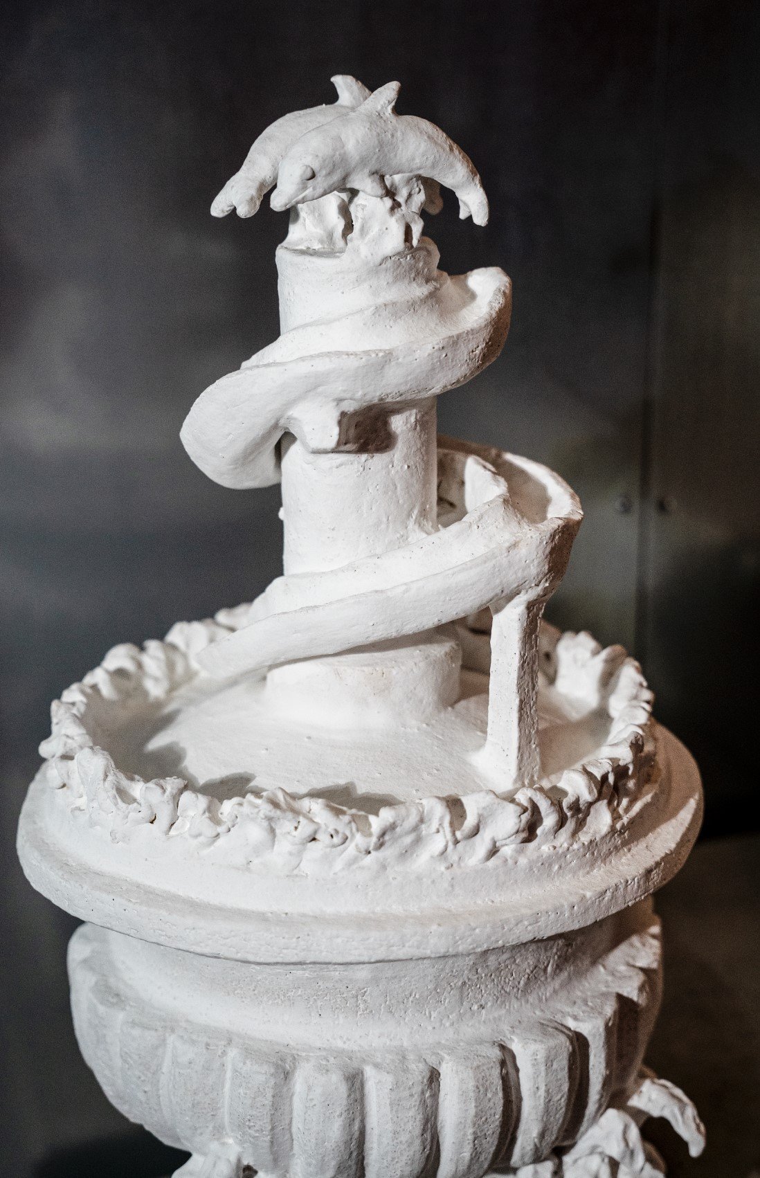 The work of Markéta Picková, a student at the Academy of Arts, Architecture and Design in Prague, from the Studio of Ceramics and Porcelain, often teeters on the fine line between applied art and sculpture. Her latest creations have made their way to Praguekabinet in the form of monumental piggy bank sculptures. The design of these piggy banks is somewhat eclectic, filled with “theatrical, stage-like façades.” They combine historicist architectural elements found in Prague’s building decor with kitschy, overtly flashy holiday symbols like a motor yacht, dolphins, or palm trees.