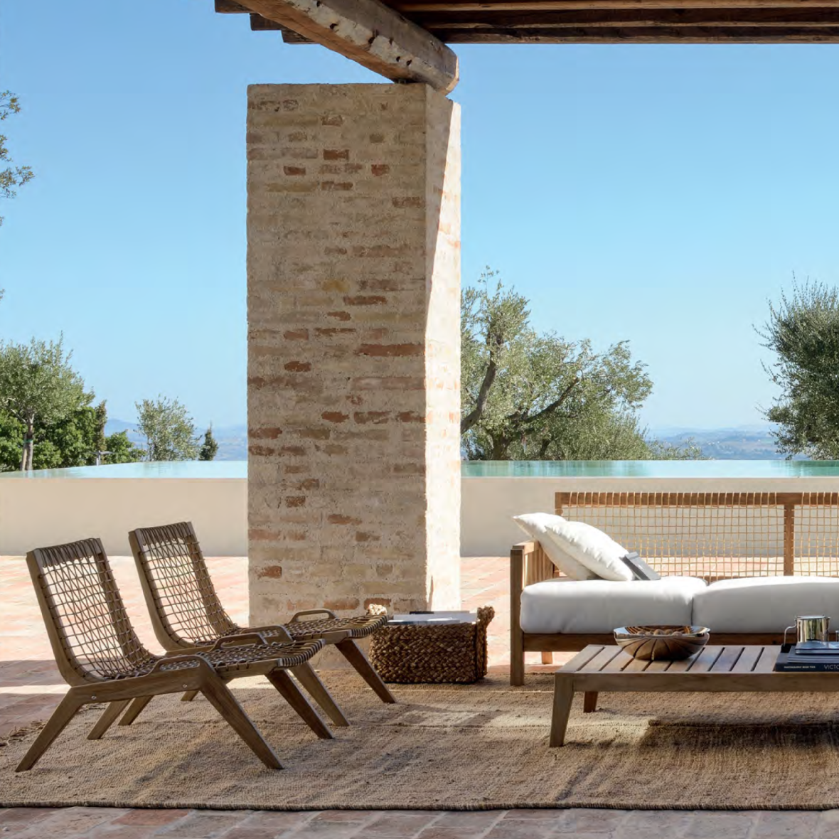 Díky nezaměnitelnému designu, který kombinuje teakové dřevo a WaProLace®, je řada Synthesis mimořádně pohodlným nábytkem. Polštáře ze 100% akrylu jsou k dispozici ve smetanové nebo béžové barvě.