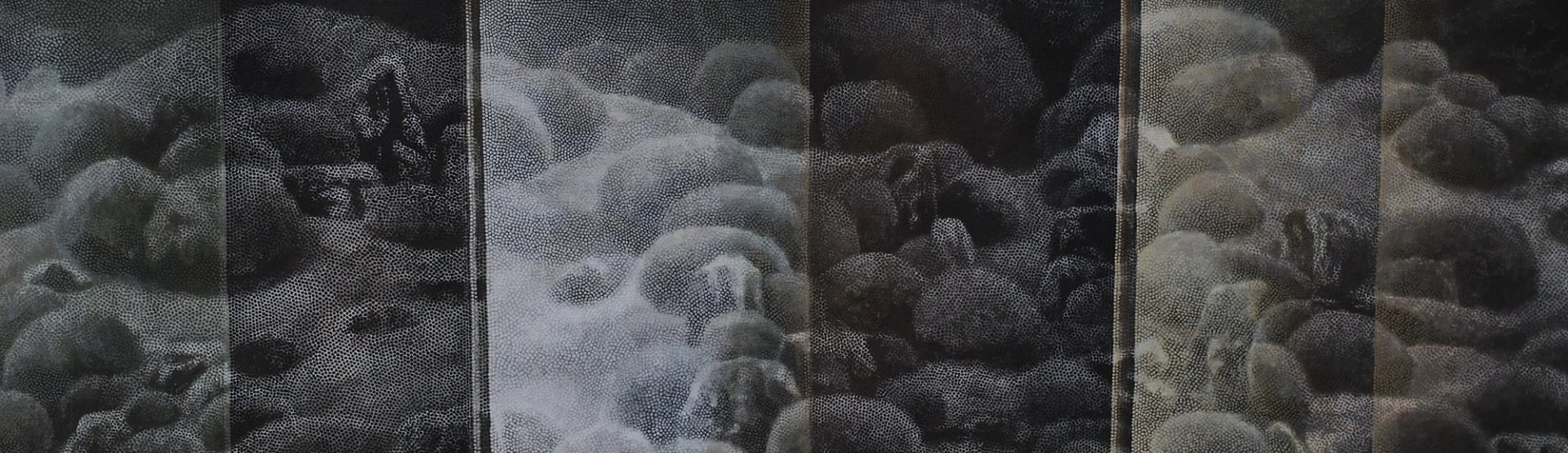 The landscape motif does not appear in the works by Eva Sakuma repeatedly but rather systematically. Continuation with this motif has led her to Japanese ink drawing which lends the picture a dynamic foundation which the painter then covers with a layer of acrylic colours so that the work acquires a peaceful if not meditative character. The fragility of her paintings is highlighted by a monochromatic and at the same time very rich colour scheme with subtle transitions rich in tones.