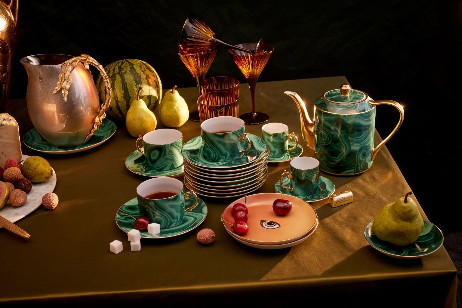 The Malachite dining set by L’Objet embodies beauty, comfort, and elegance. Crafted from fine porcelain and adorned with hand-applied 24-karat gold accents, this collection transforms winter moments into unforgettable experiences. Discover a piece that elevates your festive occasions with timeless sophistication.